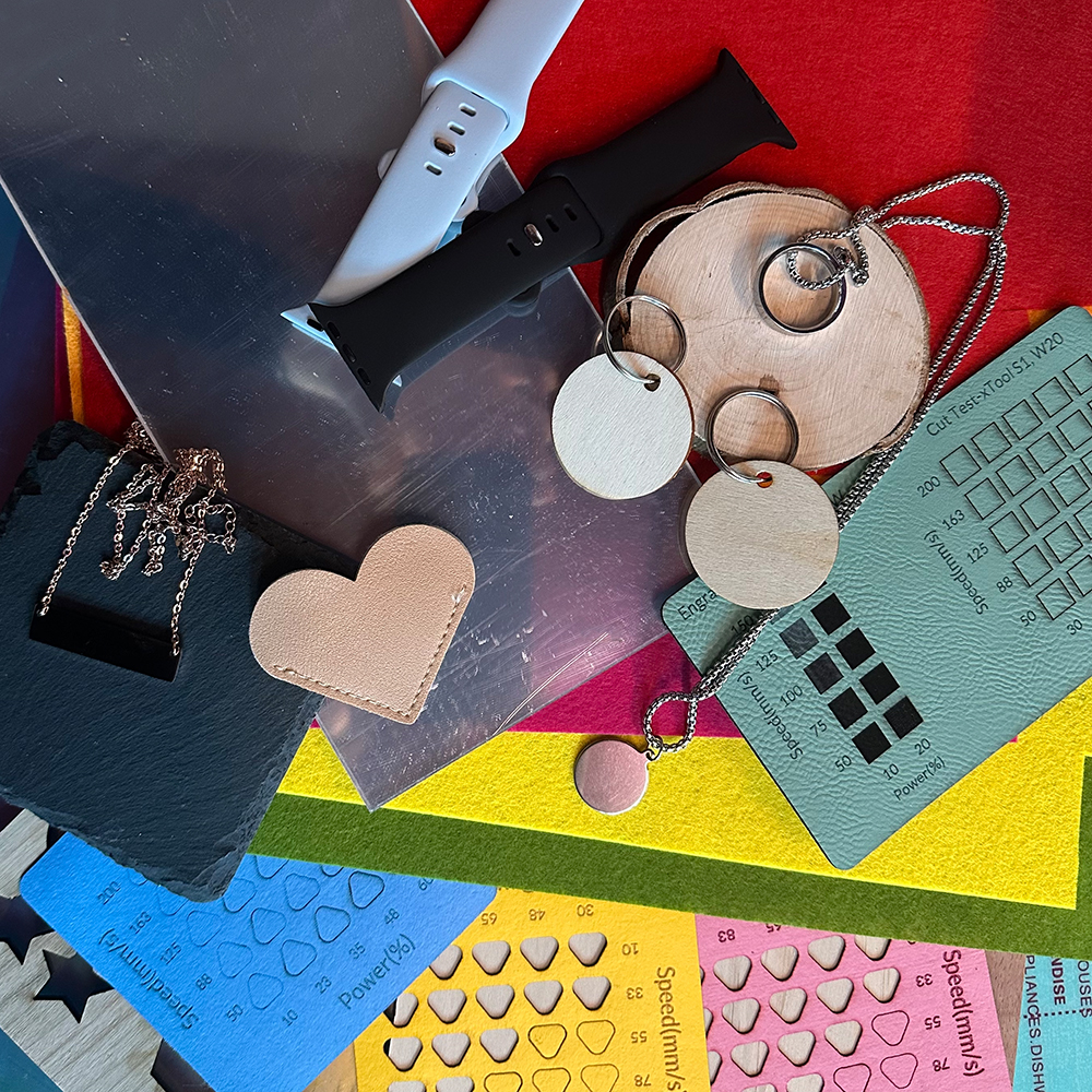 Papier, Holz, Laser-Leder, MDF, Filz, einige dunkle undurchsichtige Acrylglasarten